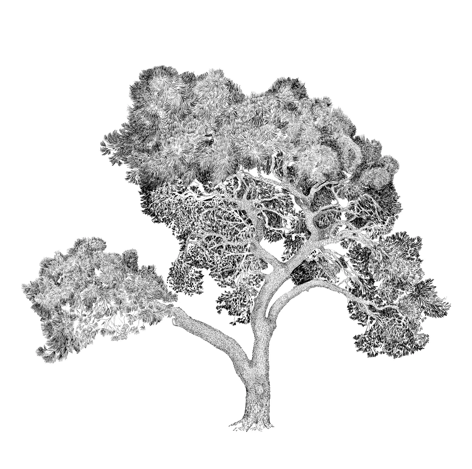 On my journeys, I have often encountered trees so powerful that they stopped me in my tracks. Over time, I felt compelled to draw these monumental beings, capturing their forms. There is something profoundly grounding in these magical giants. To render them slowly, leaf by leaf, needle by needle, is to enter a state of meditation.